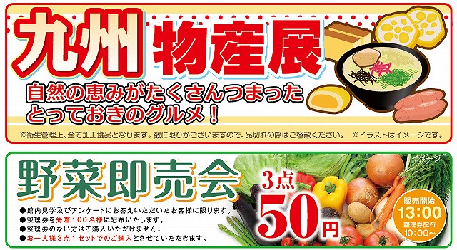 当日はとっておきグルメをお届けする「九州物産展」、セレモニーの人気企画でお得な商品をお安く提供する