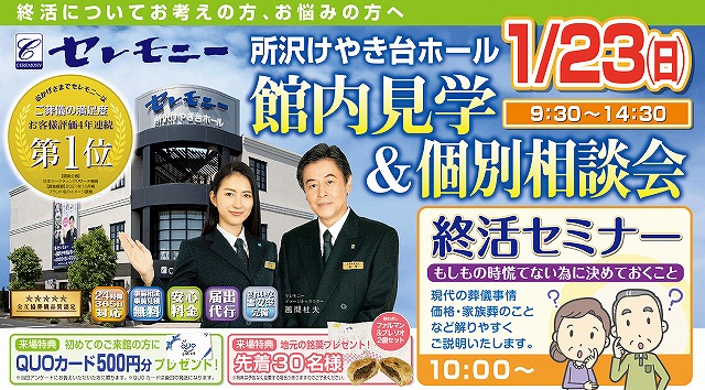所沢けやき台ホールでは1月23日(日)に館内見学&個別相談会を開催いたします。