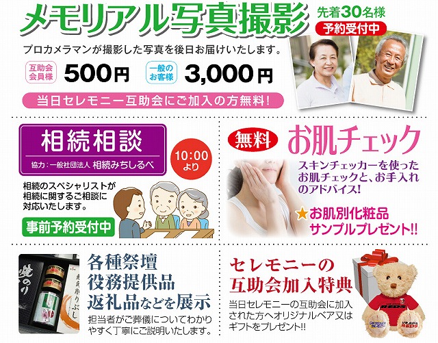 プロの相談コーナー、プロカメラマンが撮影撮影するメモリアル写真撮影と催し物がたくさん!