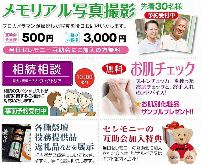 プロの相談コーナー、プロカメラマンが撮影撮影するメモリアル写真撮影と催し物がたくさん!