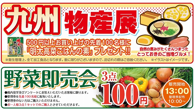 当日、九州の旬が楽しめる物産展で500円以上お買い上げの先着100名様に「明太高菜ごはんの素」プレゼント!