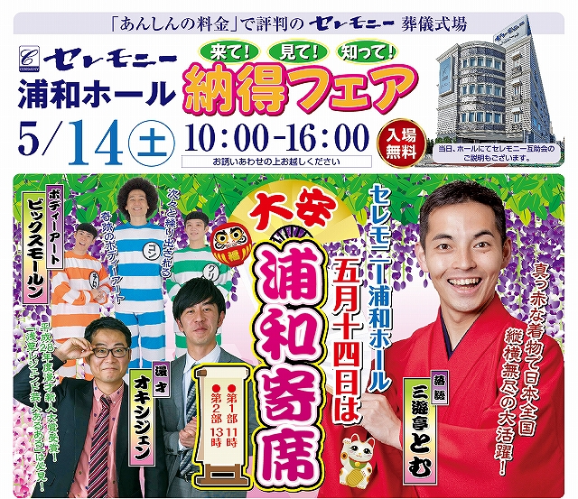 2022年5月14日(土)にセレモニー浦和ホールでは納得フェアを開催いたします。