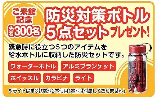 ご来場者には300名様限定で緊急時に役立つグッズをプレゼントいたします。