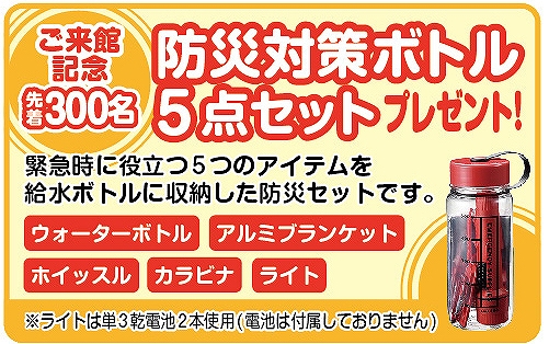 また、ご来場者には300名様限定で緊急時に役立つグッズをプレゼントいたします。