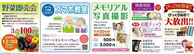 その他、野菜即売会、スマホ教室、メモリアル写真撮影、相続相談などイベント盛りだくさん。