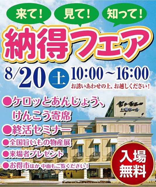 2022年8月20日(土)葬儀式場 セレモニー上尾ホールにて納得フェアを開催いたします。