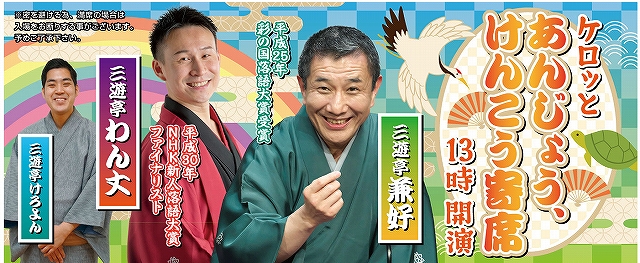 13:00からは「ケロッと あんじょう、けんこう寄席」を開催!三遊亭兼好さん、三遊亭わん丈さん、前座で三遊亭けろよんさんが登場!