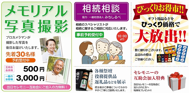 その他、野菜即売会、スマホ教室、メモリアル写真撮影、相続相談などイベント盛りだくさん。