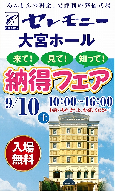 2022年9月10日(土)葬儀式場 セレモニー大宮ホールにて納得フェアを開催いたします。