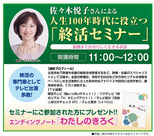 佐々木悦子先生による、人生100年時代に役立つ「終活セミナー」を開催。