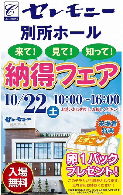 セレモニー別所ホール「納得フェア」 開催のお知らせ