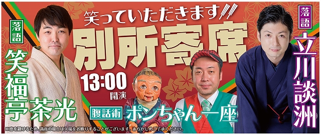 腹話術で人気のポンちゃん一座さん、笑福亭茶光さん、立川談洲さん