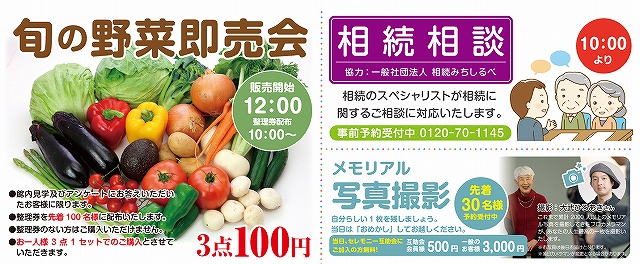 旬の野菜即売会では、3点100円で販売。来場者記念品の鍋の素と、一緒に「お鍋」なんていかがでしょうか♪