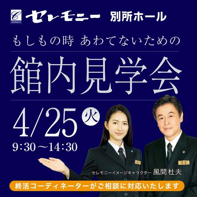 セレモニー別所ホールでは4月25日(火)に館内見学会を開催いたします。