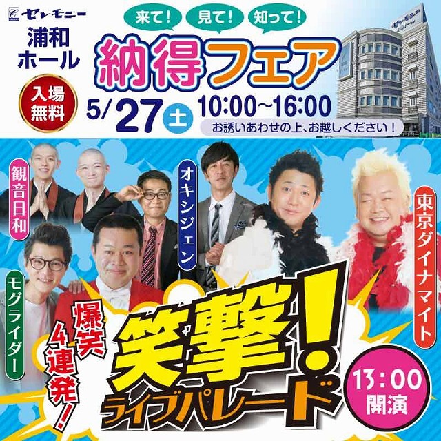 5月27日(土)人気お笑い芸人が来る!セレモニー浦和ホール「納得フェア」 開催のお知らせ