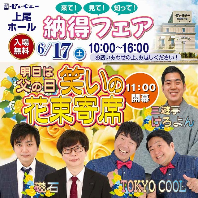 明日は父の日、笑いの花束寄席。お父さんへの感謝を込めて開催されるイベントです!
