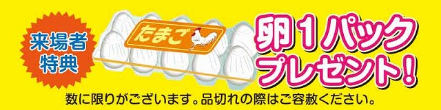 また、ご来場いただいた方には特典としてたまご1パックがプレゼントされます。