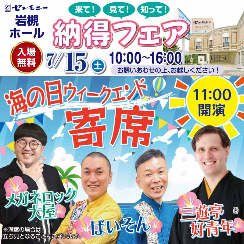 いよいよ夏本番。海の日直前に、セレモニー岩槻ホールでは「海の日ウィークエンド 寄席」と題し、