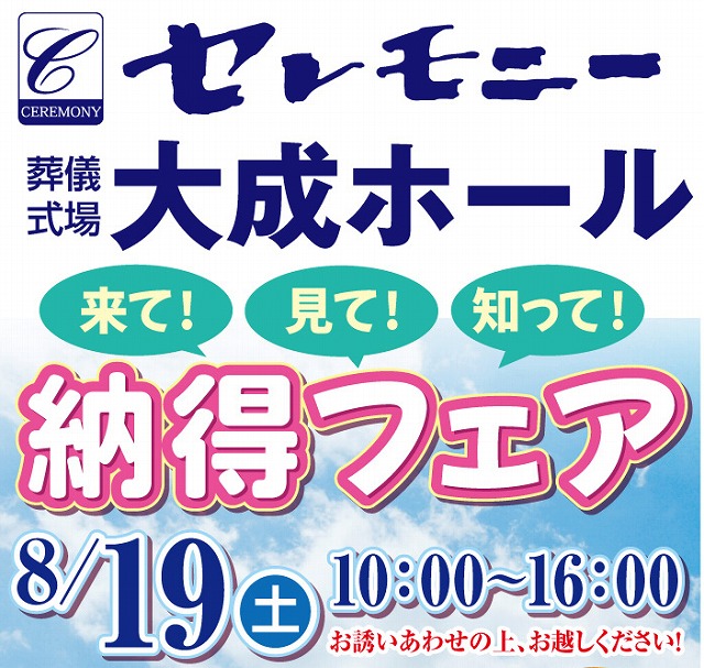 セレモニー大成ホール「納得フェア」 開催のお知らせ
