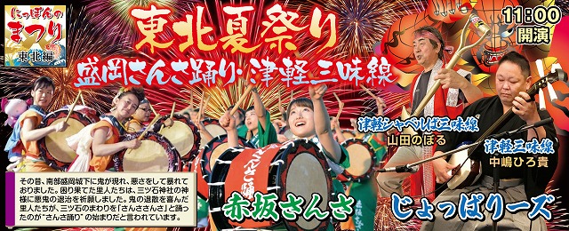 当日は、『東北夏祭り 盛岡さんさ踊り・津軽三味線』と題して、さんさ踊りや三味線を演奏。
