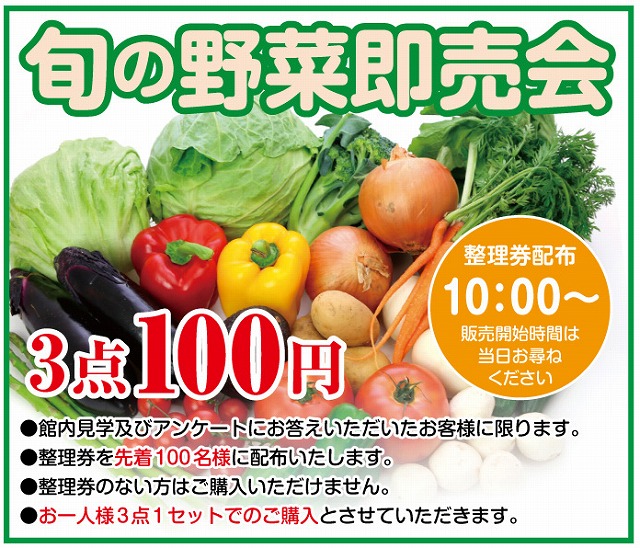 旬なお野菜を3点100円での販売や「びっくりお得市」、ご自宅で不要となった衣類を海外の恵まれない