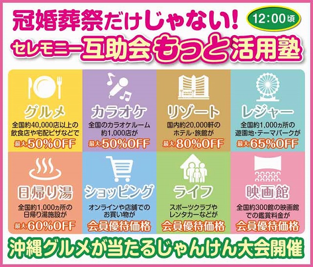 12:00からは「冠婚葬祭だけじゃない!セレモニー互助会もっと活用塾」参加者には沖縄グルメが
