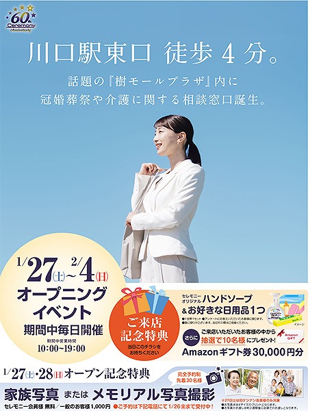 冠婚葬祭、介護、相続などの相談窓口、セレモニーケンナンサロンがオープンいたします。