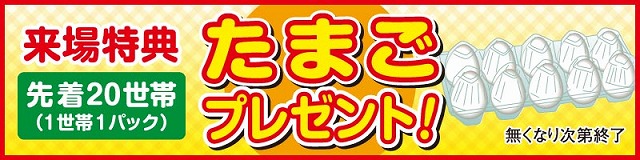 来場特典:ご来場いただいた方には、たまご1パックをプレゼント!