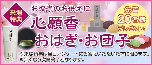 ご来場特典として心願香・おはぎ・お団子をプレゼント(先着20名様)