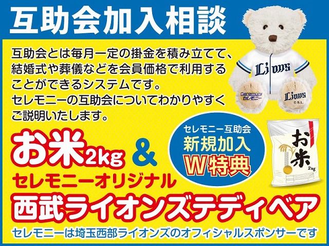 互助会加入特典としてお米2kg&西武ライオンズテディベアプレゼント