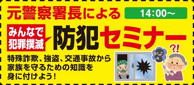 元警察署長による「防犯セミナー」などの特別なセミナーを開催いたします。