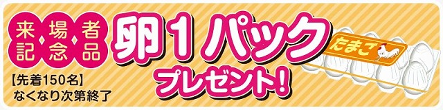 また、来場者特典として卵1パックをプレゼント(先着150名様)