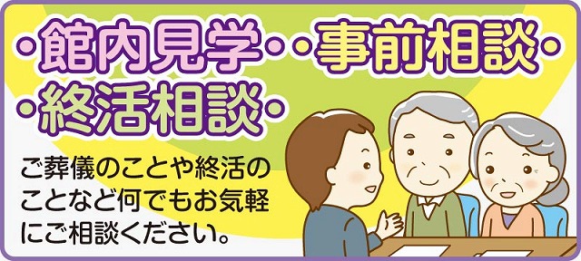 館内見学会や、事前相談、終活相談なども開催いたしておりますのでご葬儀や終活について不安に思っていることなどお気軽にご相談ください。