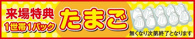 来場者特典といたしましてたまごを1世帯に1パックプレゼント!