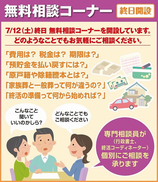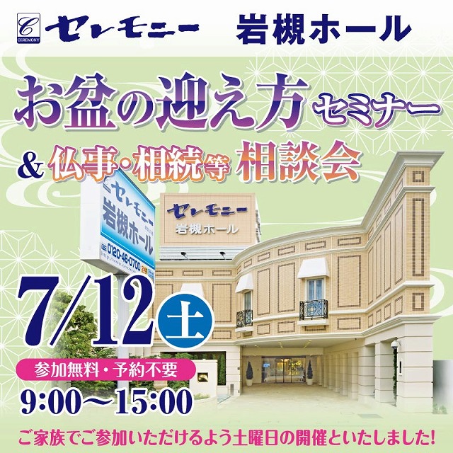 7月12日(土)に岩槻部ホールにてお盆セミナー&相談会を開催いたします。