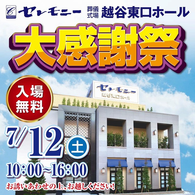 セレモニー越谷東口ホール 大感謝祭 開催のお知らせ