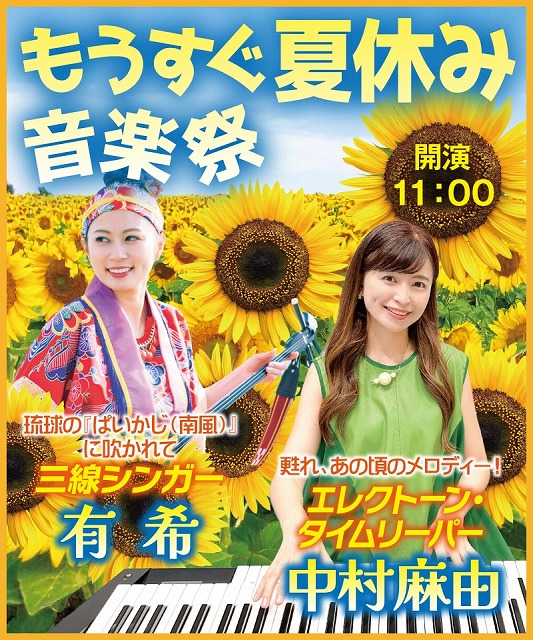 三線シンガーの有希さんと、エレクトーン・タイムリーパーの中村麻由さんが