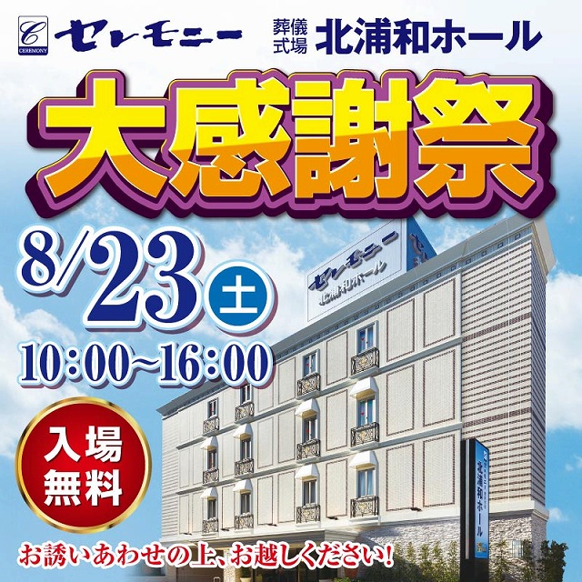 日頃のご愛顧に感謝を込めて、セレモニー北浦和ホールにて「大感謝祭」を開催いたします。