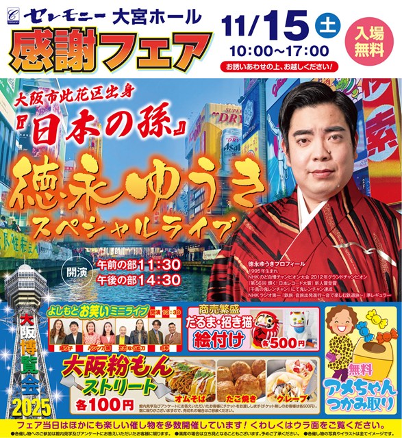 セレモニー大宮ホール 感謝フェア「徳永ゆうき スペシャルライブ」開催のお知らせ