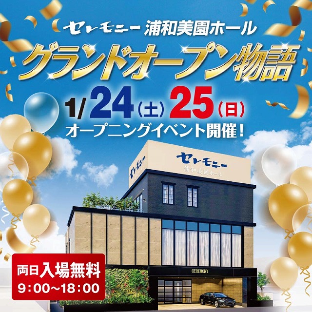 地域の皆様に支えられ、この度12月に「セレモニー浦和美園ホール」が待望のグランドオープンを迎えました。
