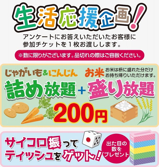 ・じゃがいも・にんじん詰め放題+お米盛り放題