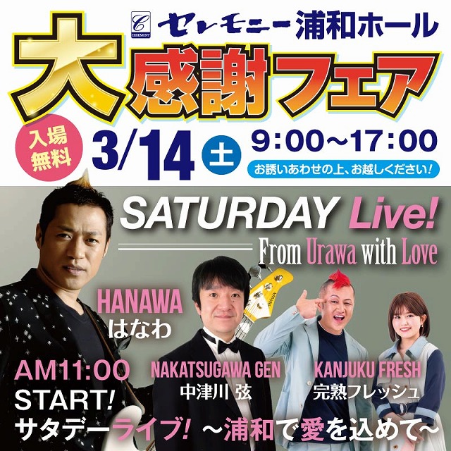 日頃のご愛顧に感謝を込めて、セレモニー浦和ホールでは「大感謝フェア」を開催いたします。