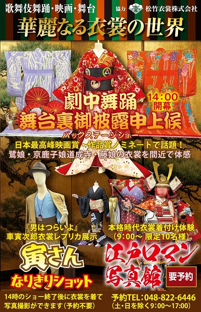 歌舞伎舞踊・映画・舞台などで使用される衣裳の展示や、