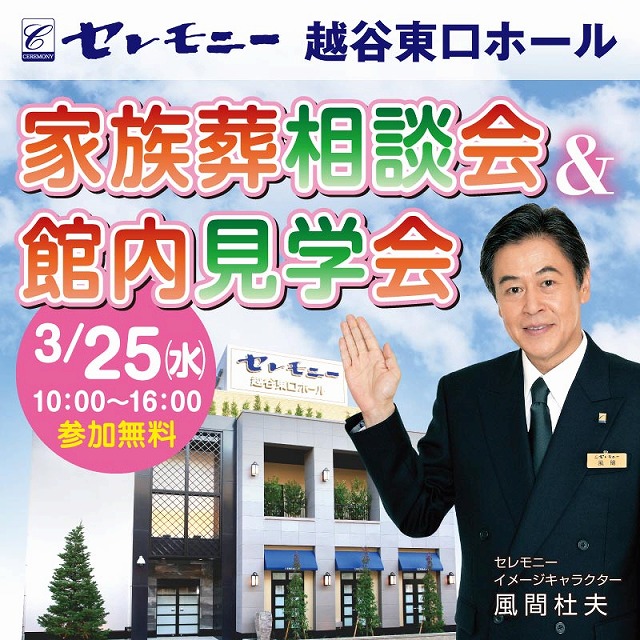 越谷東口ホールにて3月25日(水)に家族葬相談会&館内見学会を開催いたします。