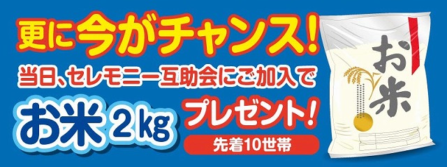 更に、当日セレモニー互助会ご入会の方へお米2kgプレゼント!