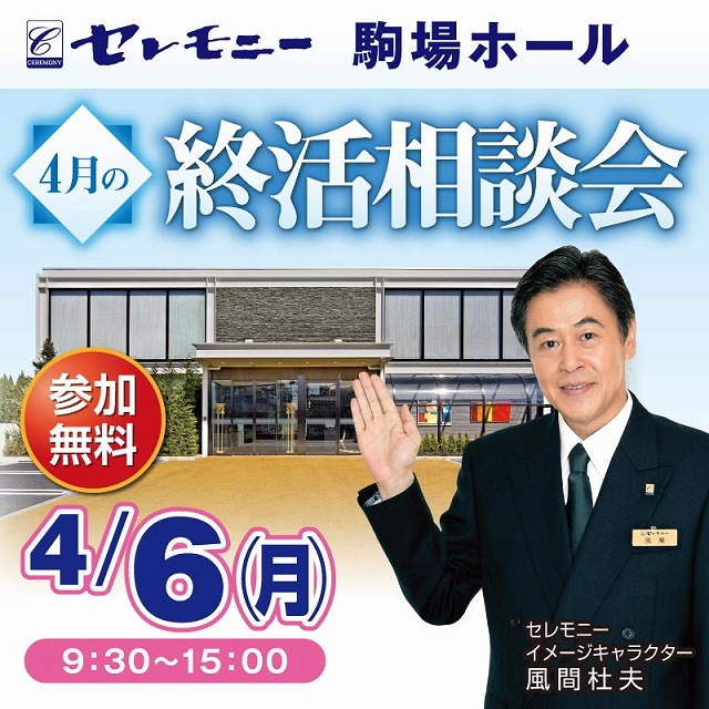 セレモニー駒場ホールでは4月6日(月)に「終活相談会」を開催いたします。