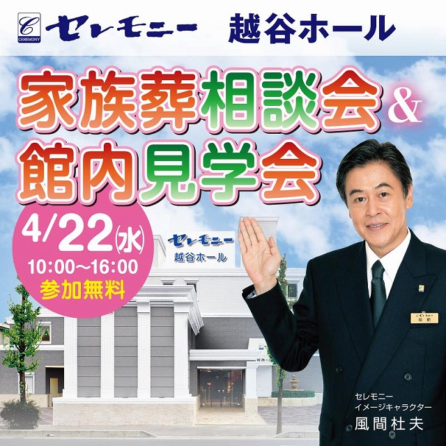この度、セレモニー 越谷ホールにて、家族葬相談会&見学会を開催いたします。