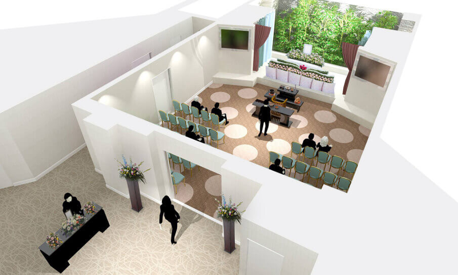 生花祭壇 お棺のまわり 入口受付装飾 メモリアルコーナー