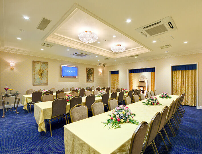 | 対応人数 | 小式場:着席数30名 最大対応人数50名 大式場:着席数80名 最大対応人数200名 ※全館利用300名 |