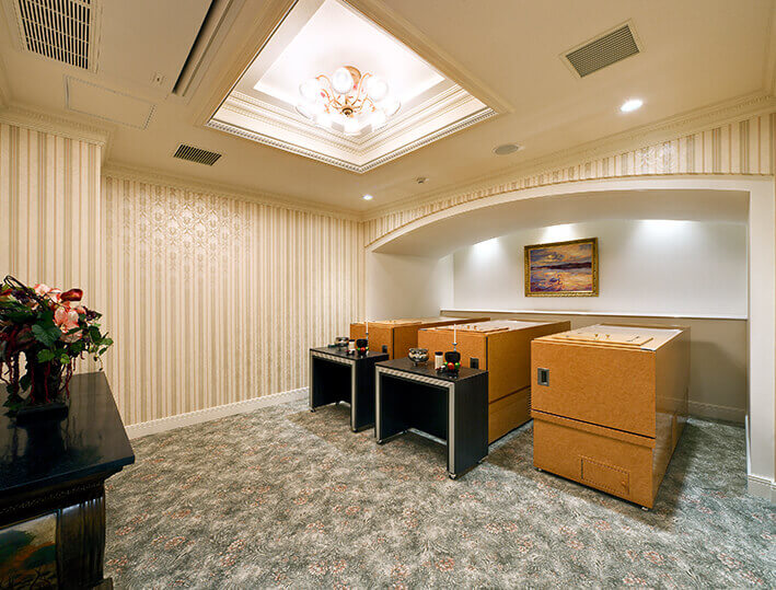 - きれいな霊安室を完備し、専用の保冷庫を5基ご用意しております。また、故人様とゆっくりお別れができる特別霊安室もございます。
